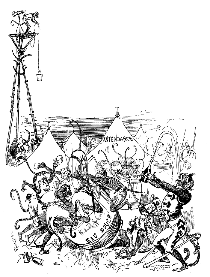 По прибытии на равнину, где вся армия жарилась под палящим солнцем вследствие непонятного пока маневра английского флота, повозки интендантской службы были встречены громогласными «ура!» умиравших от жажды полков. Дистрибуция прошла быстро: каждый полк получил свои бочки, тотчас же окруженные солдатами. Вскрытие бочек вызвало некоторую суматоху; пресная вода интендантской службы показалась подозрительной паре-тройке офицеров, которые попытались не подпустить к ней солдат; вода была чистой и прозрачной, но слишком уж отдавала алкоголем.