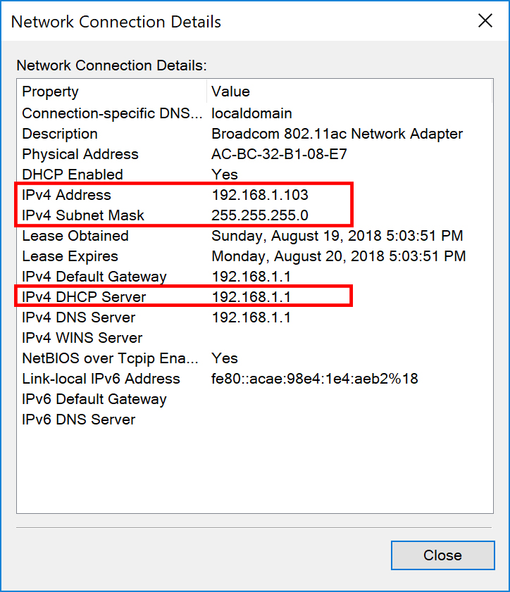 Дополнительная информация сетевой карты, где можно увидеть полученные настройки и IP DHCP сервера