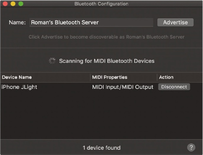 Как я уже говорил, Apple – первая компания, которая интегрировала BLE-MIDI в свои операционные системы. В MAC OS уже есть необходимое программное обеспечение, которое позволяет и «рекламировать» подключение, и также видеть и подключаться к BLE-MIDI устройствам. В iOS хоть такая поддержка и есть, но отдельного софта для работы с этим протоколом нет. Apple реализовала возможность подключения оригинальной библиотеки BLE-MIDI от Apple для интеграции работы с этим протоколом в приложениях. Это значит, что если производитель софта хочет открыть в своем приложении возможность работать с этим протоколом, то ему достаточно подключить стандартную библиотеку. В других системах, Windows, Android и Linux, для работы с этим протоколом нужно ставить дополнительное программное обеспечение, которое будет позволять видеть такие подключения и подключаться к ним с эмуляцией виртуальных MIDI портов. Хорошая новость в том, что таких приложений существует не одно, и пользователь сам может выбрать, с каким ему удобнее работать. Пример разных приложений и их возможностей мы разберем в главе «Программное обеспечение для работы с протоколами синхронизации».