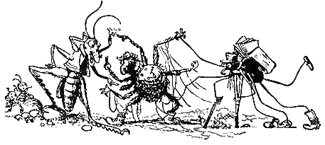 – Кажется, местность эта довольно густо заселена, – возразил Хромоног, указывая своему товарищу на длинную вереницу муравьёв, которые тащили гусеницу в муравейник.
