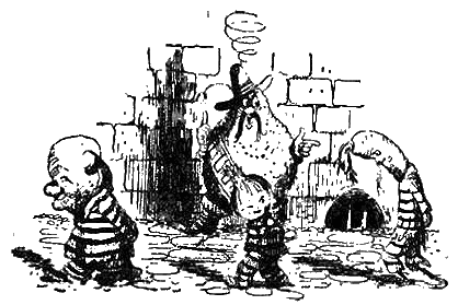 Вы, наверно, уже поняли, что Лимонишка не был силён в этой науке. Он снова начал счёт, но число заключённых то уменьшалось, то увеличивалось. Наконец он решил бросить это дело, чтобы не запутаться окончательно. И тут, посмотрев на круг, он в ужасе протёр глаза: возможно ли это? Арестантов стало чуть ли не вдвое меньше!