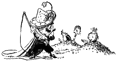 Дело в том, что все те, кого синьор Петрушка записывал в графу «провинившихся», должны были платить штраф. Мастер Виноградинка почти ежедневно платил штраф, а иной раз и по два штрафа в день. Наконец суд, то есть кавалер Помидор, вернулся в зал заседаний.