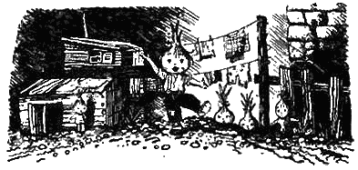 Кума Тыквочка пустила по деревне слух, будто бы эти крупные буквы на стенах вывел ваксой сам мастер Виноградинка.