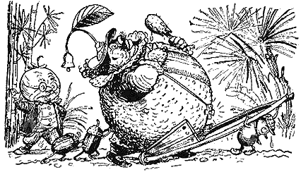 И в самом деле, барон Апельсин был очень видной особой – он даже за версту казался целой горой. Пришлось сразу же нанять для него слугу, который возил бы его живот, – сам барон уже не в состоянии был таскать своё внушительное брюхо.