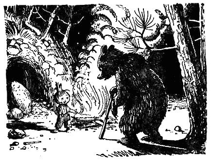 Медведь любезно согласился потанцевать ради своих новых друзей, и таким образом обитатели пещеры и лесной гость провели очень приятный вечер.