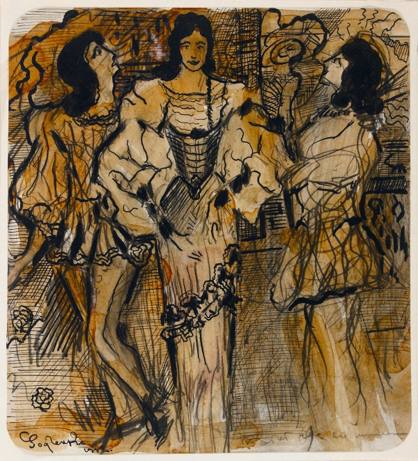 198. «В кафешантане». Трое. Темпера. 35×39 см.