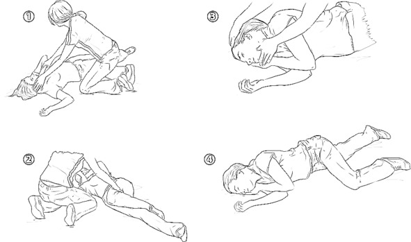 – При потере сознания голову повернуть набок, выдвинуть нижнюю челюсть, чтобы предотвратить удушье.