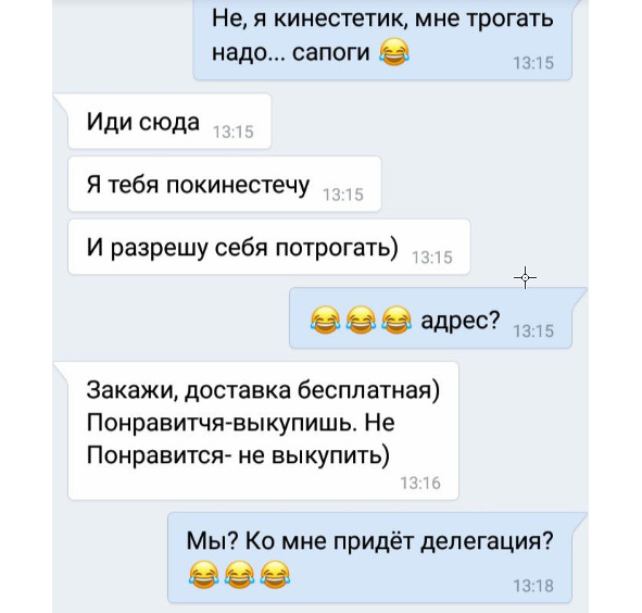 Я: Приложение такое неудобное. Вотсап есть? Давай номер, добавлю.
