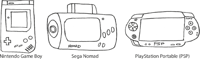 У портативных консолей, как и у аркадных автоматов, есть дисплей, процессор и контроллер, только все это маленькое – настолько, что их можно держать в руках. Изначально на одну портативную консоль приходилась одна игра. У Auto Race (Mattel Electronics, 1976), например, был цифровой экран, а у серии Game & Watch (Nintendo, 1980) – более приятный глазу жидкокристаллический. Одной из первых портативных систем со сменными картриджами стала Microvision (Milton Bradley, 1979), а рассвет таких игр случился, когда слава пришла к Tetris на Game Boy (Nintendo, 1989) – предтече Nintendo DS[18]. В последнее время портативные системы набрали мощности. Процессор Sony PSP выдерживает игры, по требовательности сопоставимые с играми для PlayStation One. Большой шаг вперед по сравнению с точечками Mattel Football!
