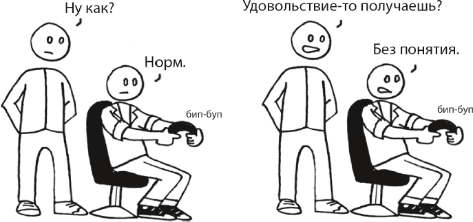 4. Поиграйте в игру, желательно плохую. В хорошие[45] игры играть тоже полезно, но познавательней – в плохие. Играя в плохую игру, подмечайте, что в ней неудачно и как бы вы это исправили. Представьте себе, сколько людей придумывали свои варианты летательных аппаратов до братьев Райт. Иногда идея в полной мере раскрывается не на первой итерации.