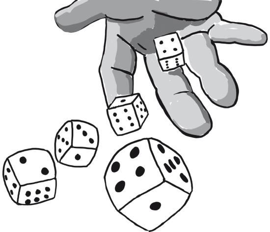 Итак, мы сделали поле, нарисовали трек, разместили на нем фишки… Ах да, а для чего же нам монетка? Монетка – это генератор случайных значений, то есть «орел» или «решка». Генератор случайных значений может принимать множество форм: монетка, кубик, колода карт, волчок, мешочек с тайлами, страница в книге и т. д.
