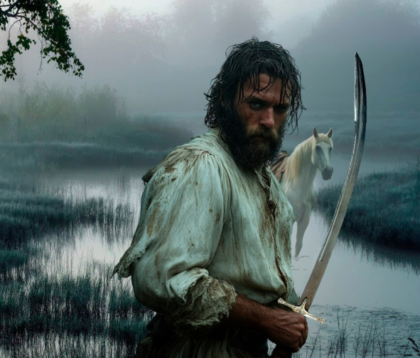 Бахнули выстрелы. За спиной раздался конский топот. «Раззява!» – обругал себя Михайло, пригибаясь. Подбежал к Вороне, шагнул одной ногой в воду, оглянулся: два всадника, вынырнув из тумана, летели прямо на него. Принять бой у берега или постараться отплыть? Снова бахнуло. Стреляют, что б их! Пришлось резко прыгать в сторону. Время было упущено, первый всадник успел сблизиться и уже размахивался саблей, чтобы рубануть с наскока. Отбить получилось, присев и сделав выпад, как учил дядька Степан. Свечку родичу за здравие не забыть бы поставить. Чужая лошадь больно ударила копытом в грудь, Михайло отлетел в воду с громким плюхом, новый взмах вражеской сабли. Откат. «А-а, промахнулся, сволочь!» Над тихой рекой полетела отборная брань. Сейчас подскочит второй, и пиши пропало. Михайло, собрав все силы, подпрыгнул и вышиб ватажника из седла. Новые брызги. Вода окрасилась в розовый цвет. Труп врага остался позади, Михайло нырнул, сделал под водой обманный крюк. Сабля мешала грести. Вынырнул, сделать вдох.