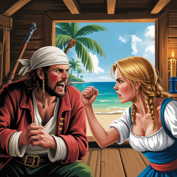 Впрочем, бывалый пират заметил и ехидные искорки в глазах и хищную улыбочку. Наконец красотке надоело изображать из себя принцессу и она, всплеснув ладошками, перешла на деловой тон: