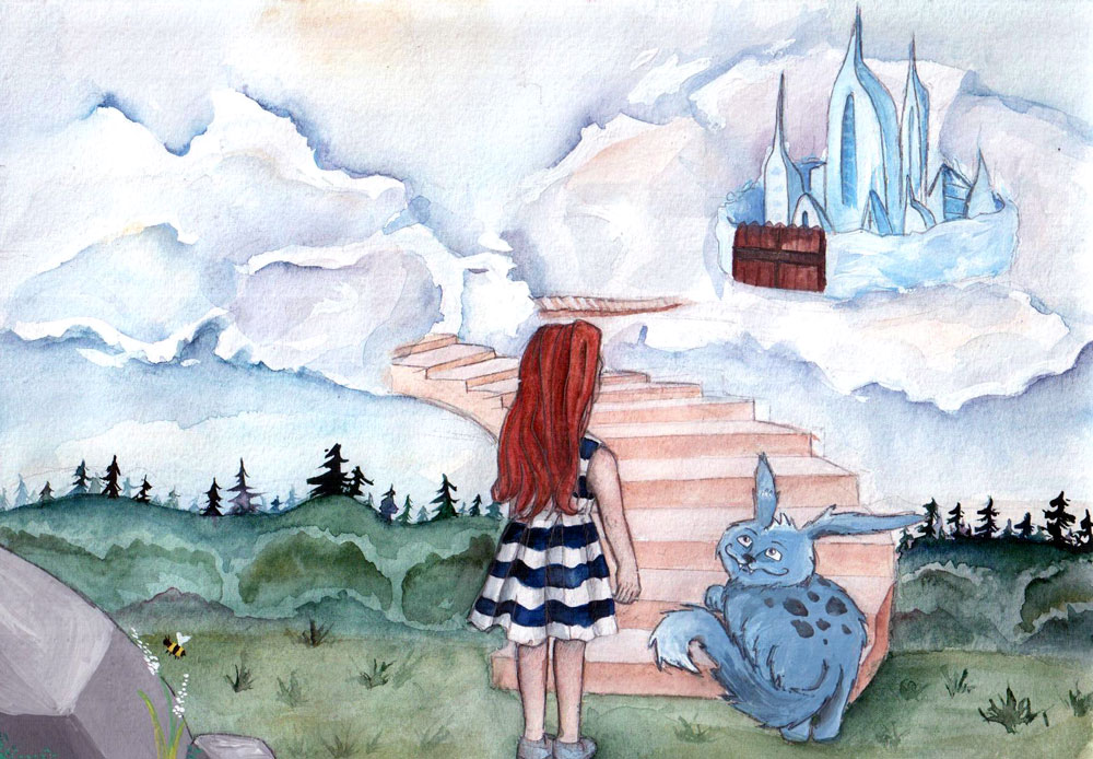 Теперь мои сны казались забавными. Сколько всего необычного я могла здесь увидеть. Только то, что в руках у меня белый кролик со множеством лап и змеиным языком, вызывало во мне чувство восторга. Я никак не могла привыкнуть к такому чудному зверьку. Наконец, мы добрались до огромной лестницы, которая вела в город Облаков. Стали подниматься вверх. Города не видно, лишь лестница, соединяющая небо и землю. Как будто лестница уходит вверх и исчезает из вида. Несколько секунд – и мы оказались так высоко. С моим умением быстро бегать – это не составило особого труда. Перед нами предстали огромные ворота, возле которых сидел забавный старичок с длинной седой бородой и шапке в форме облачка. Он мило улыбался.