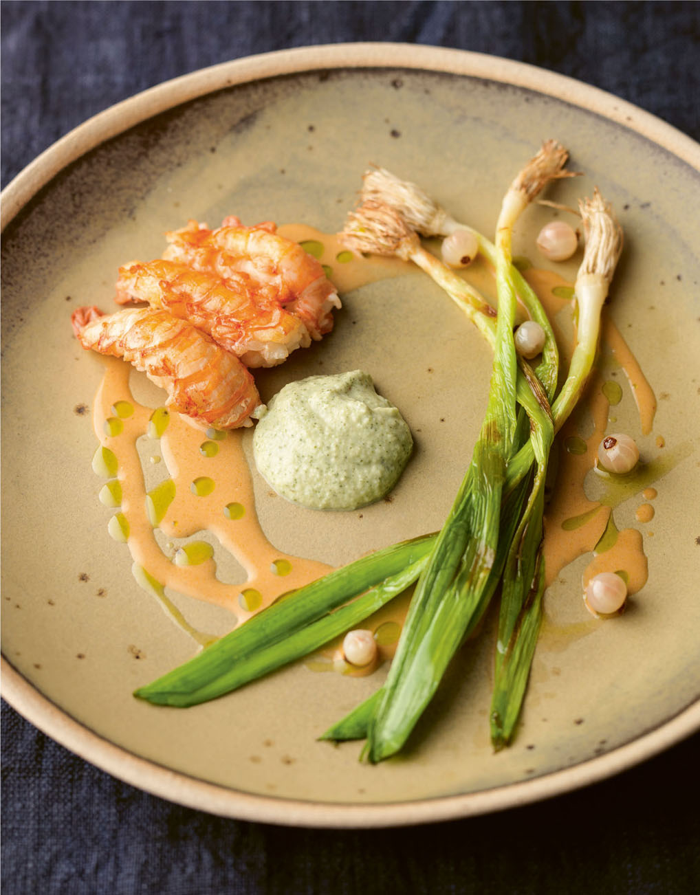 LEEK AND LANGOUSTINES WITH SWEET CICELY AND FENNEL SAUCE