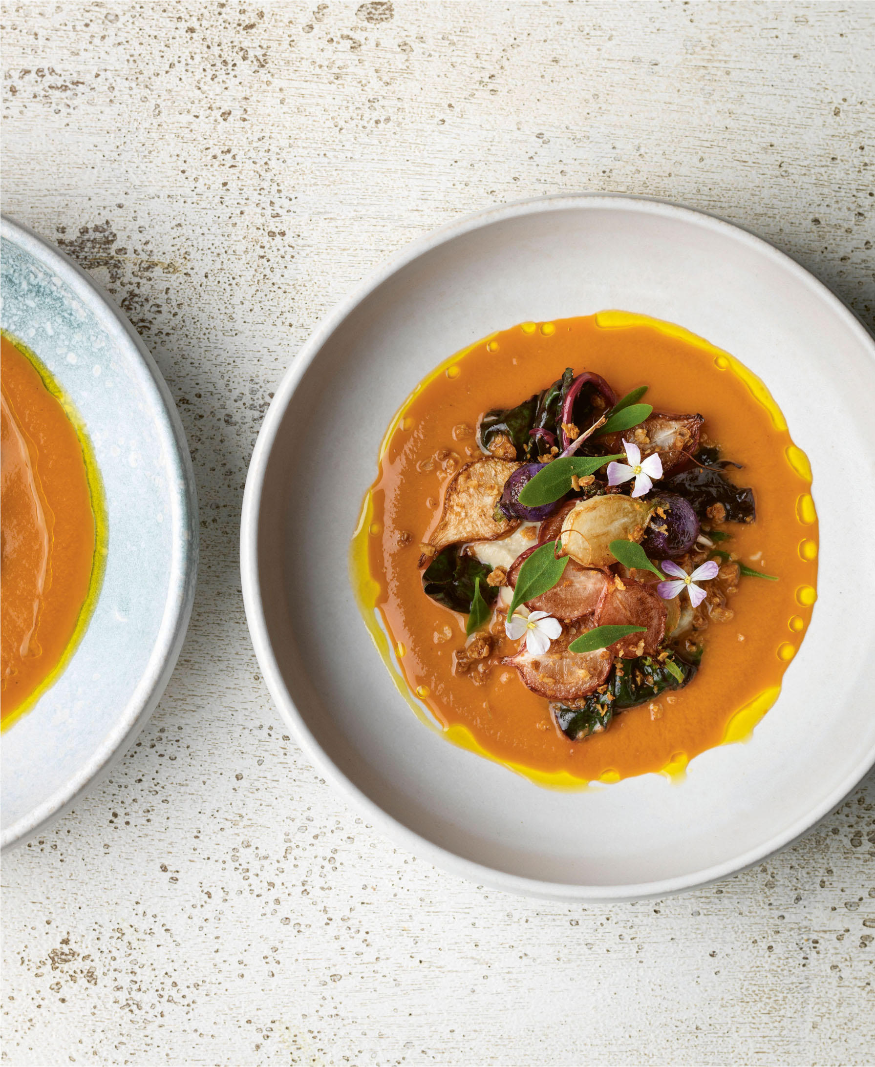 There are a few elements to this dish, but the radishes take centre stage. We use many different varieties; each offer something unique, but all are nutritional powerhouses. Use a few varieties if you can – we use Cherry Belle, bright red with crisp, mild, sweet white flesh; Albena, a white-skinned and white-fleshed mild variety; and Viola, with its bright violet skin and crisp white flesh. The truffle granola is one of my favourite recipes; it’s really moreish and if it’s around I can’t help but pick at it. You can make a big batch and store it in an airtight container – but I promise you it won’t hang around for long!