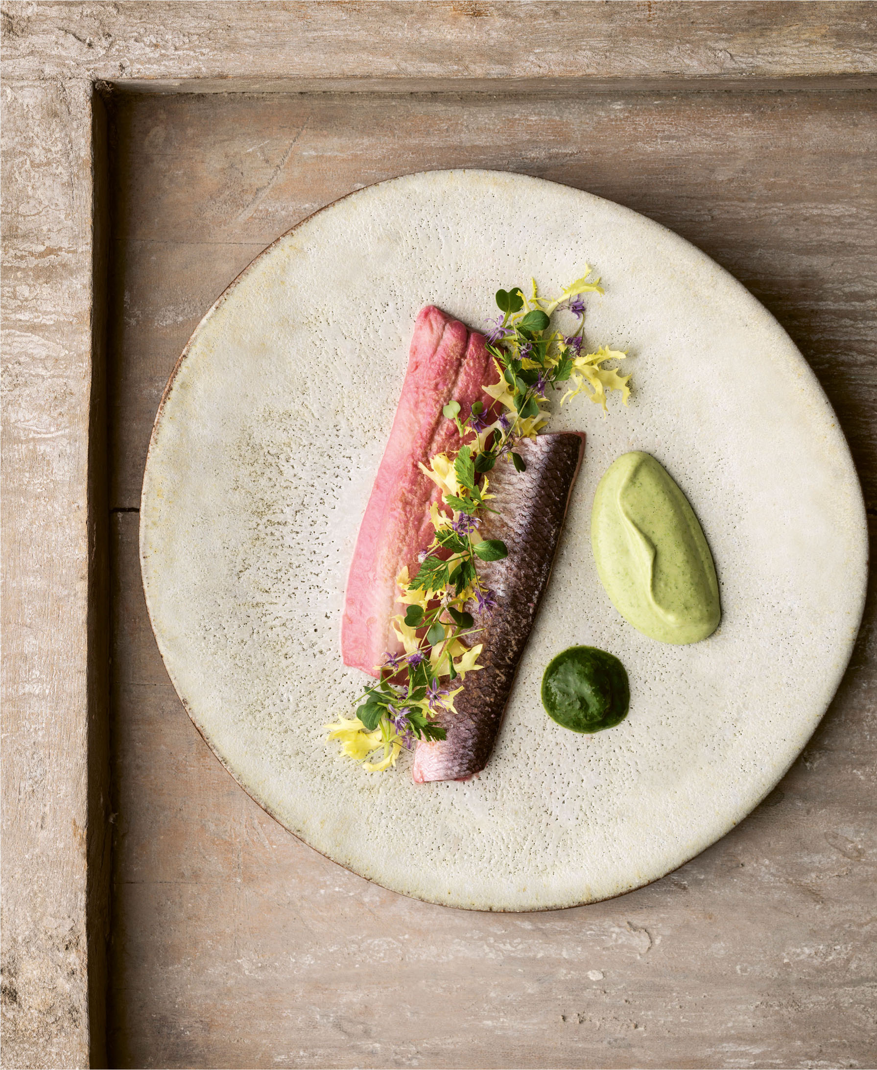 This is one for lovers of aniseed flavours – like me. The combination of fennel, sweet cicely and star anise packs an aniseed flavour punch against the sweet, delicate flavours of the langoustines and cream sauce. The whitecurrants are a lovely addition when in season as they add little bursts of sweetness and freshness. The recipe makes more oil than you will need, but it keeps in the freezer or for 3–5 days in the fridge – it might discolour over time but it’s still fine to use.