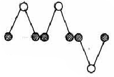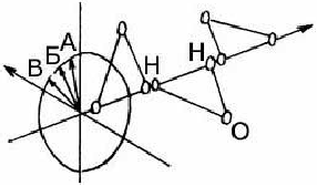 В полимерном состоянии молекулы воды по водородным связям объединяются в длинные полимерные цепочки. Водородные связи в этих цепочках значительно слабее НО связей. Это позволяет при некоторых энергетических затратах поворачивать молекулы воды в полимерной цепочке друг относительно друга. А теперь по аналогии с азбукой Морзе проведем перекодирование информации при помощи плоской цепочки, состоящей, к примеру, из трех молекул (рис. 20):