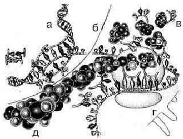г – рибосома, на которой происходит синтез белка из аминокислот;