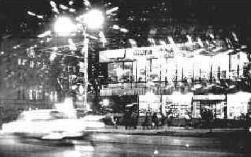 3. Четырехмерные пространства. В четырехмерном пространстве к трем координатам привычного всем объема добавляется координата времени. Наглядным примером такого пространства может служить ночной снимок города: фиксированные изображения трехмерных домов и размазанные по снимку изображения движущихся людей и автомобилей (рис. 24).