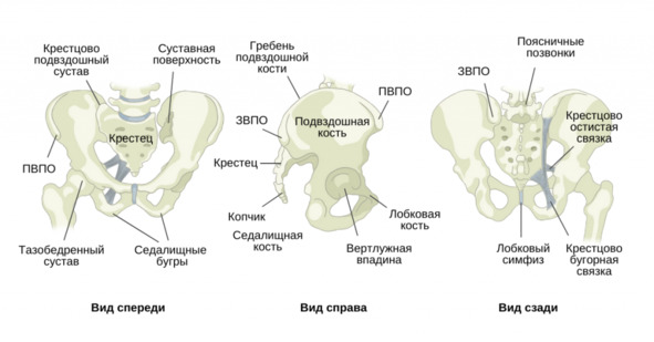 Изучите предложенное изображение таза. Найдите у себя каждую из костей.