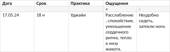 Отмечайте дату, срок беременности, название практики и, коротко, основные ощущения в теле. Приятные и не приятные. Например: