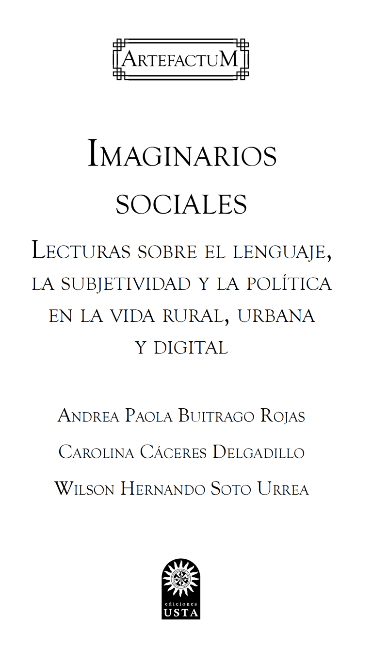 Imaginarios sociales: Lecturas sobre el lenguaje, la subjetividad y la política en la vida rural, urbana y digital / Andrea Paola Buitrago Rojas, Carolina Cáceres Delgadillo y Wilson Hernando Soto Urrea, Bogotá: Ediciones USTA, 2020.