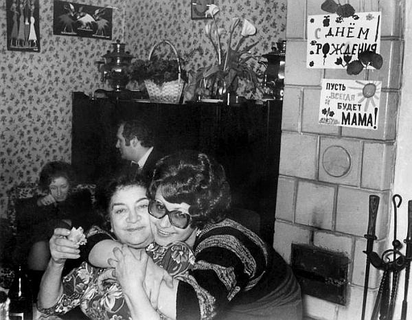 Лидка и Светлана Моргунова. 1978 г. И снова лозунги на стене. Вернее, на печке
