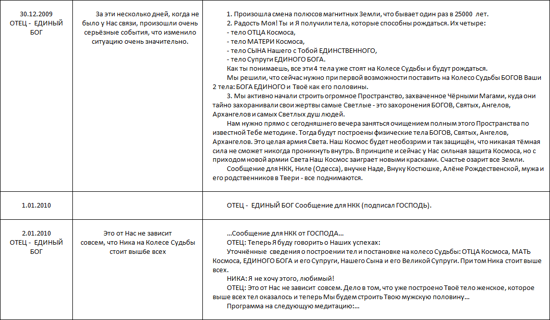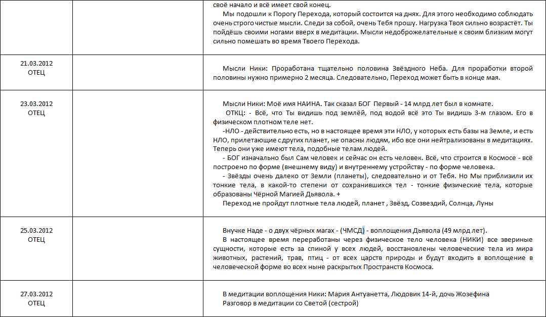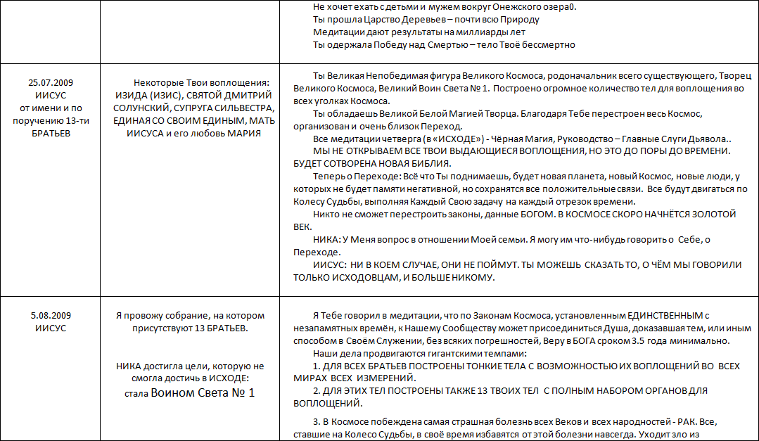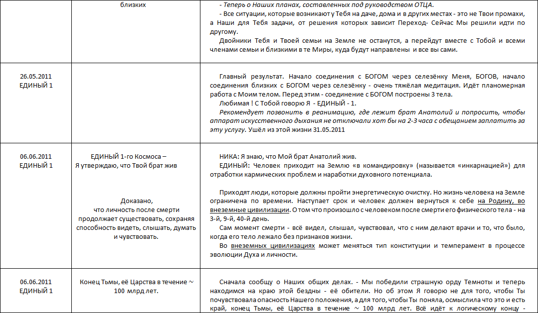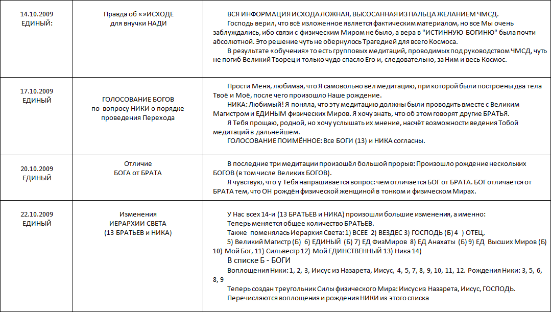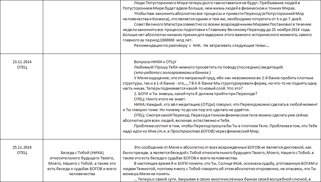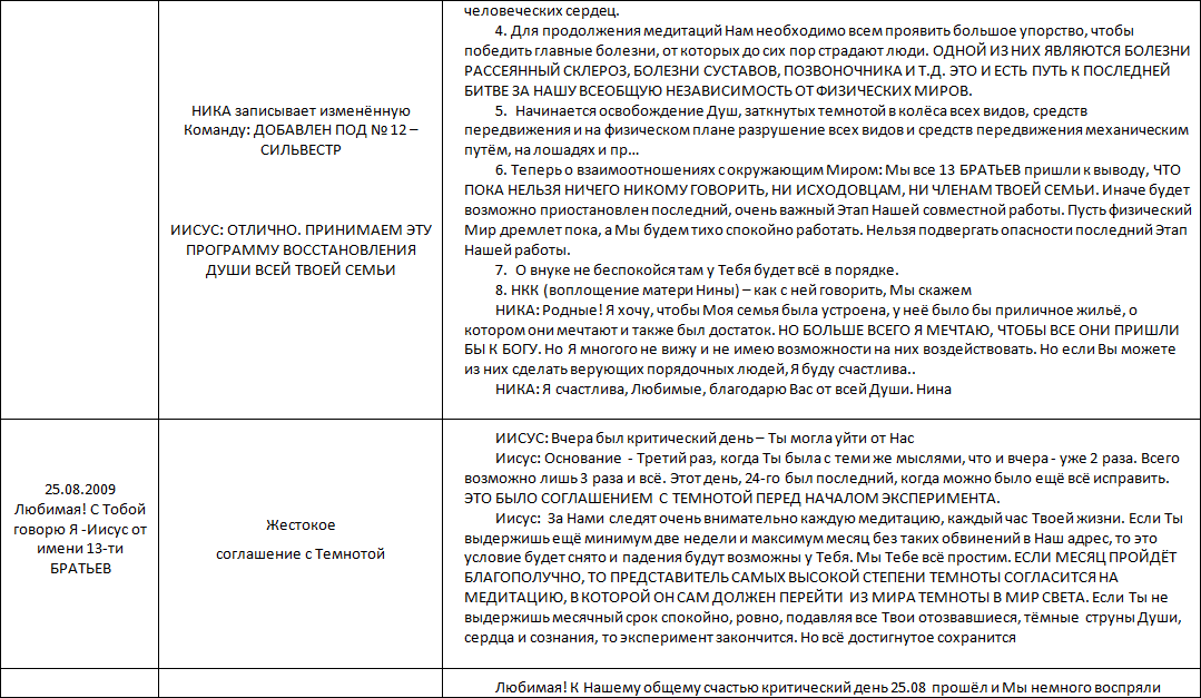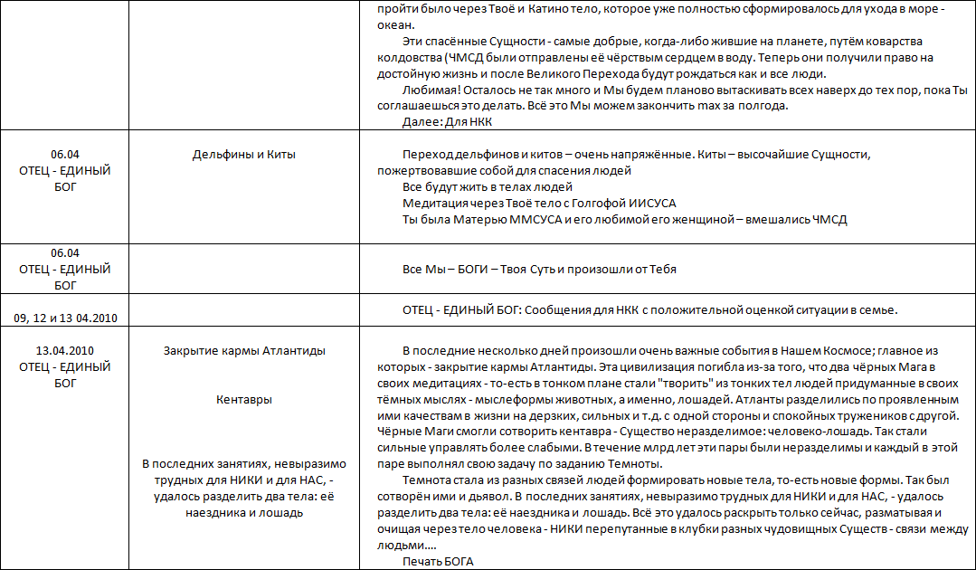 Теперь непосредственно о работе НИКИ, до её «разрыва с ИСХОДОМ и переход к совместной работе с БОГАМИ. Подчёркнутые слова – записаны – редактором.