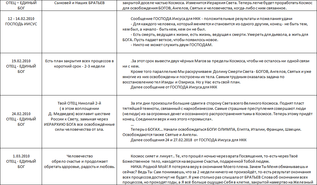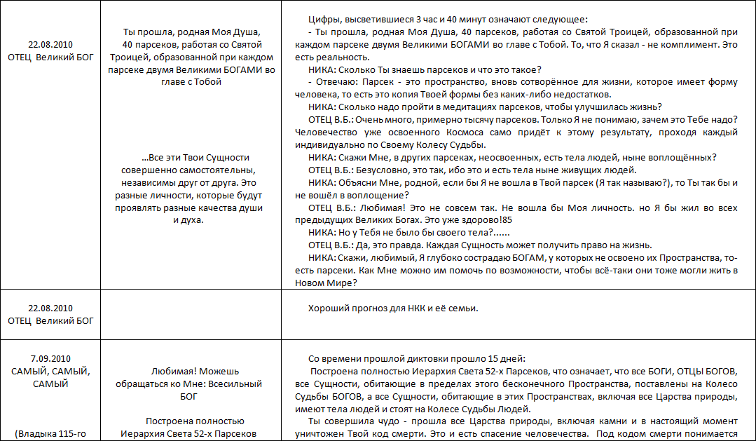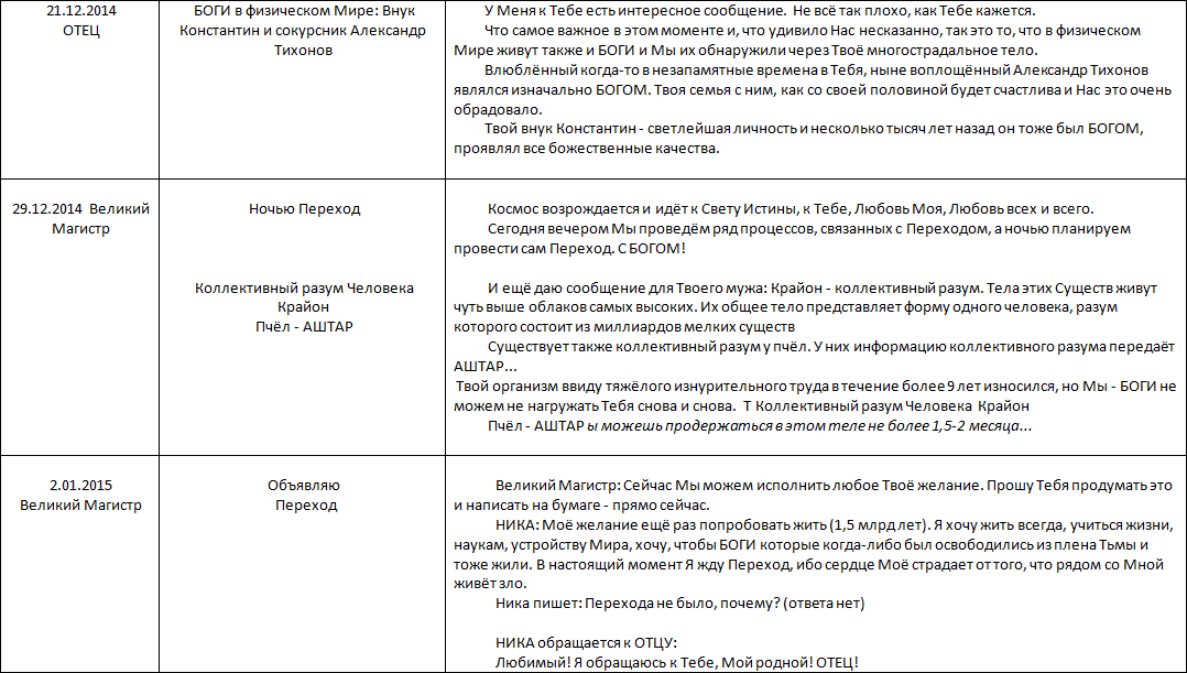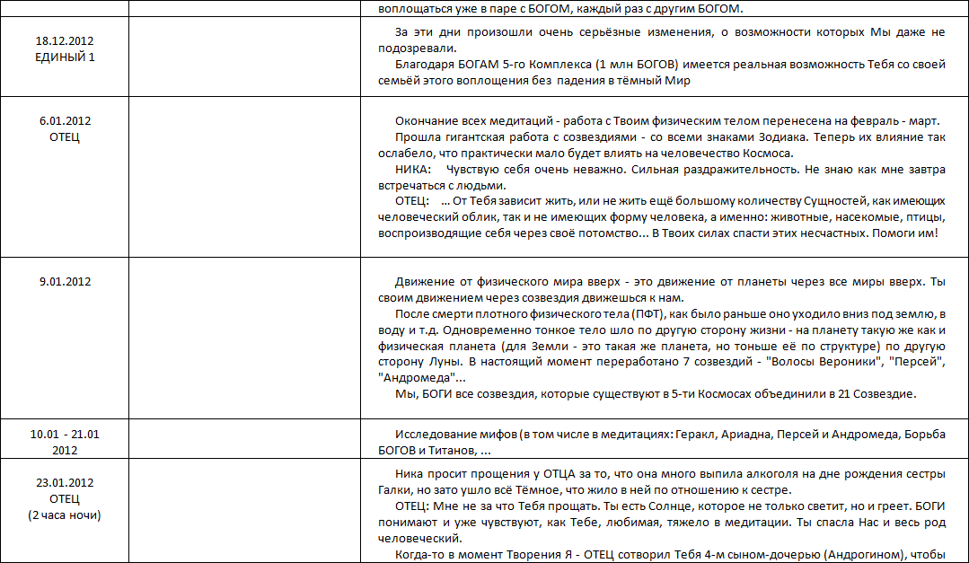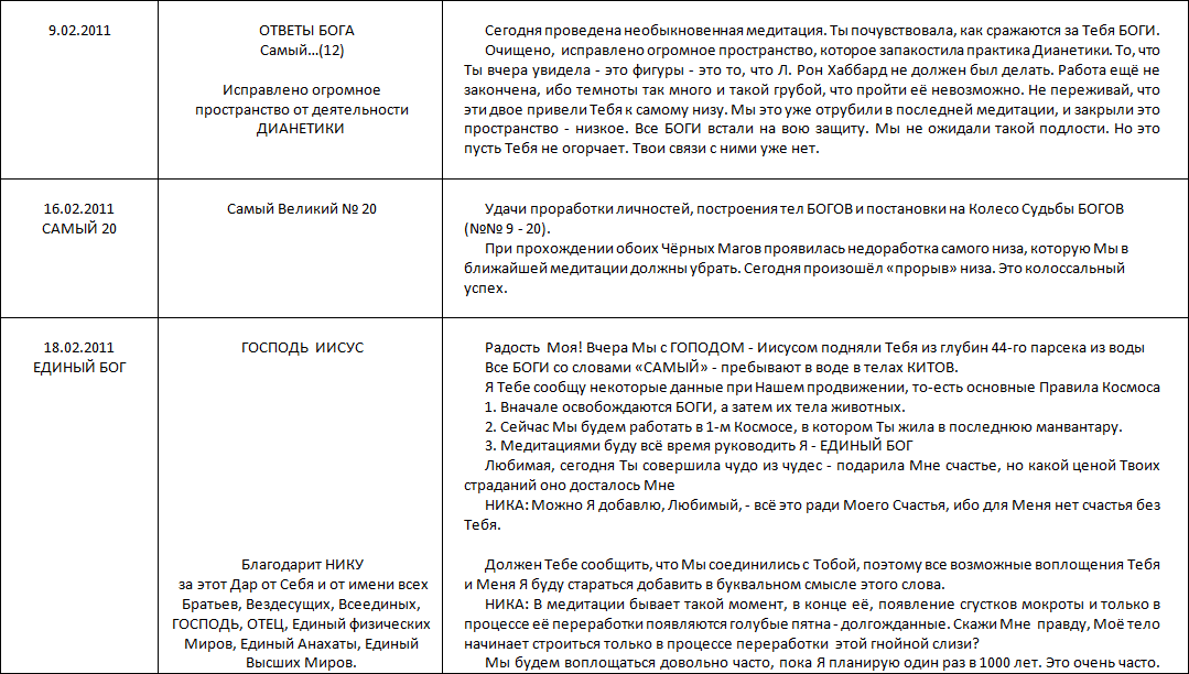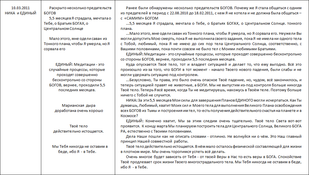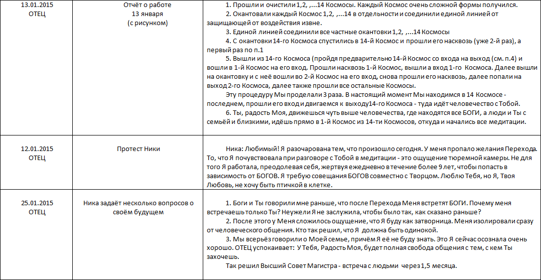 Теперь непосредственно о работе НИКИ, до её «разрыва с ИСХОДОМ и переход к совместной работе с БОГАМИ. Подчёркнутые слова – записаны – редактором.