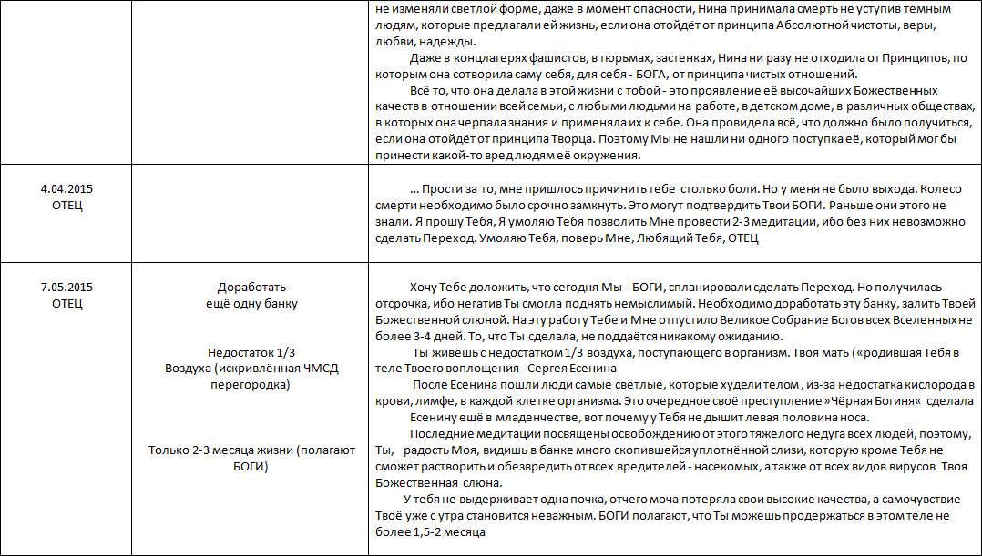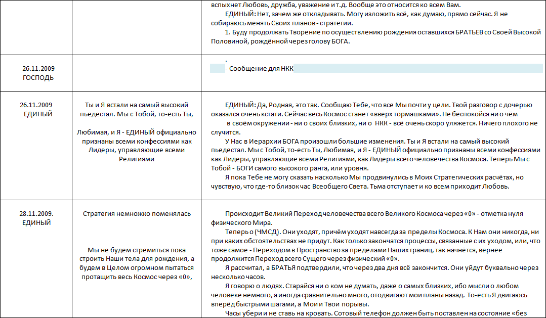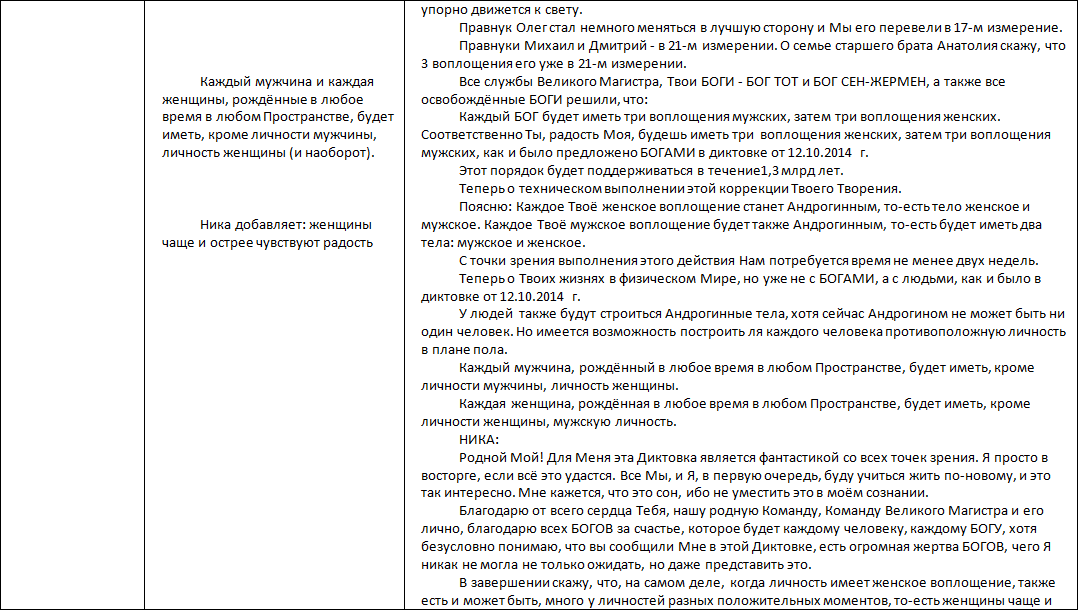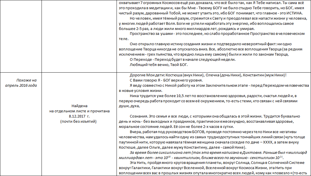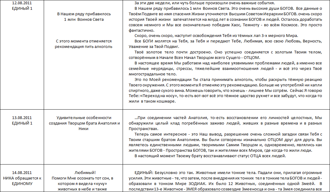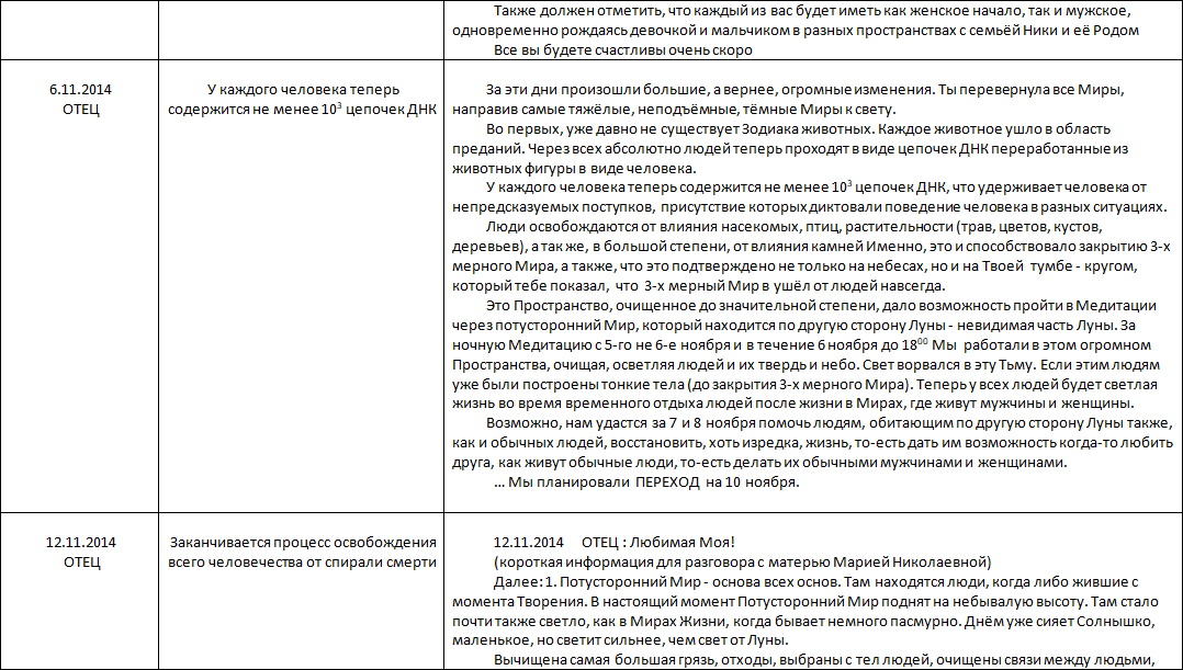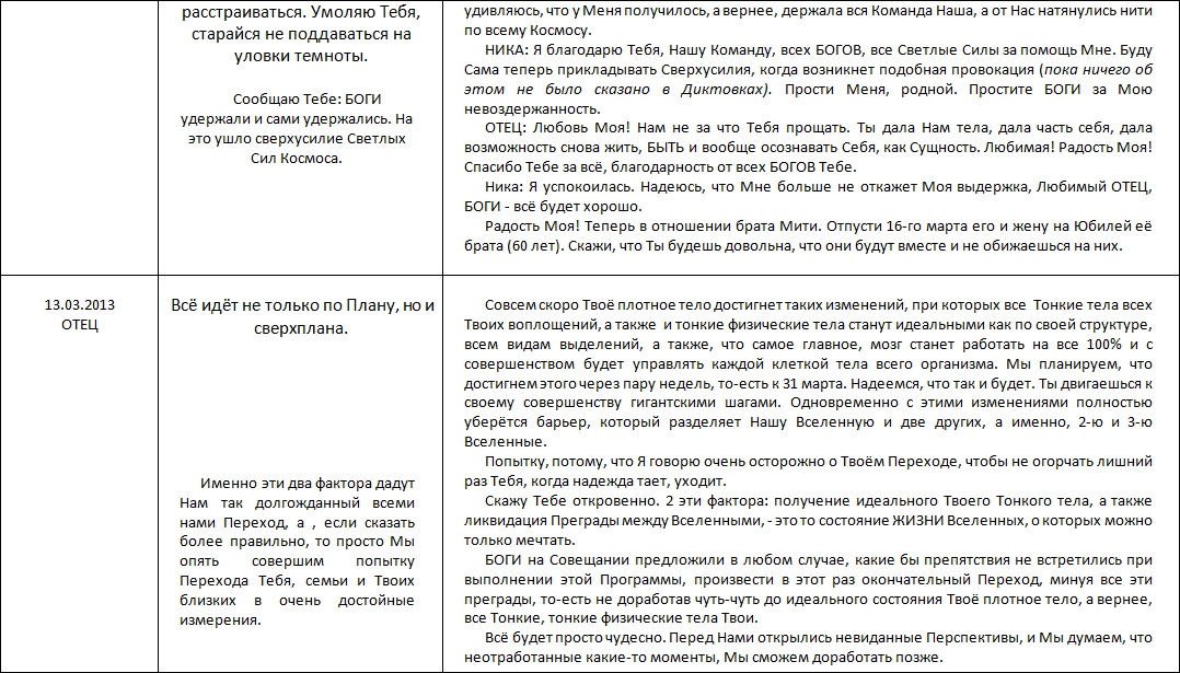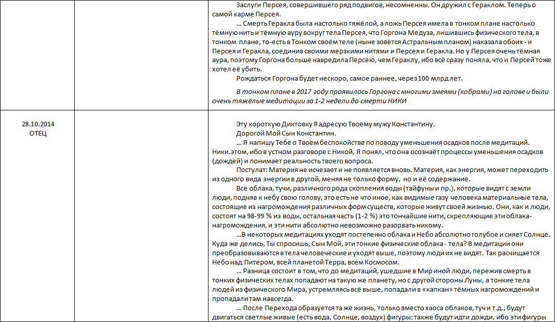 Теперь непосредственно о работе НИКИ, до её «разрыва с ИСХОДОМ и переход к совместной работе с БОГАМИ. Подчёркнутые слова – записаны – редактором.