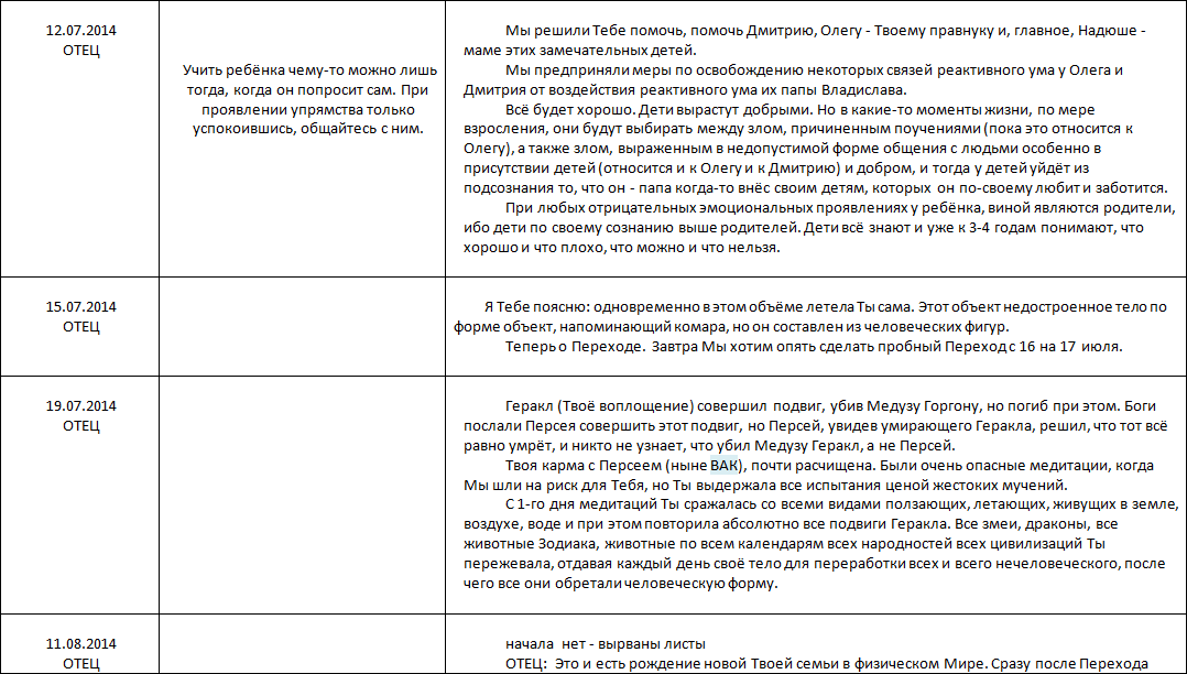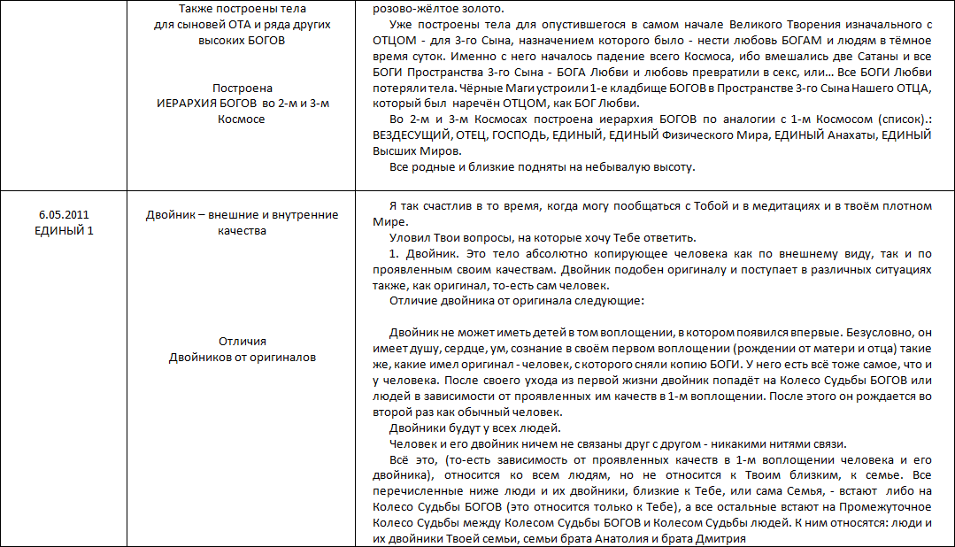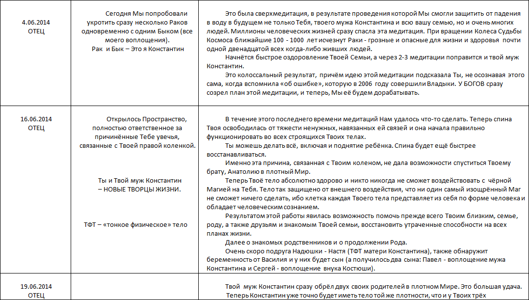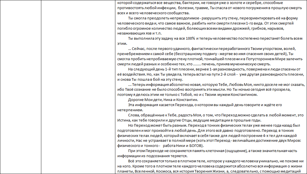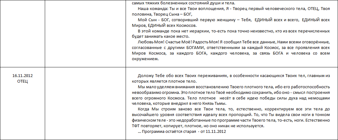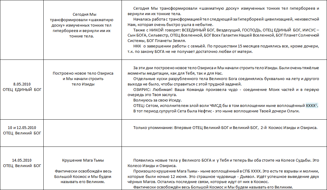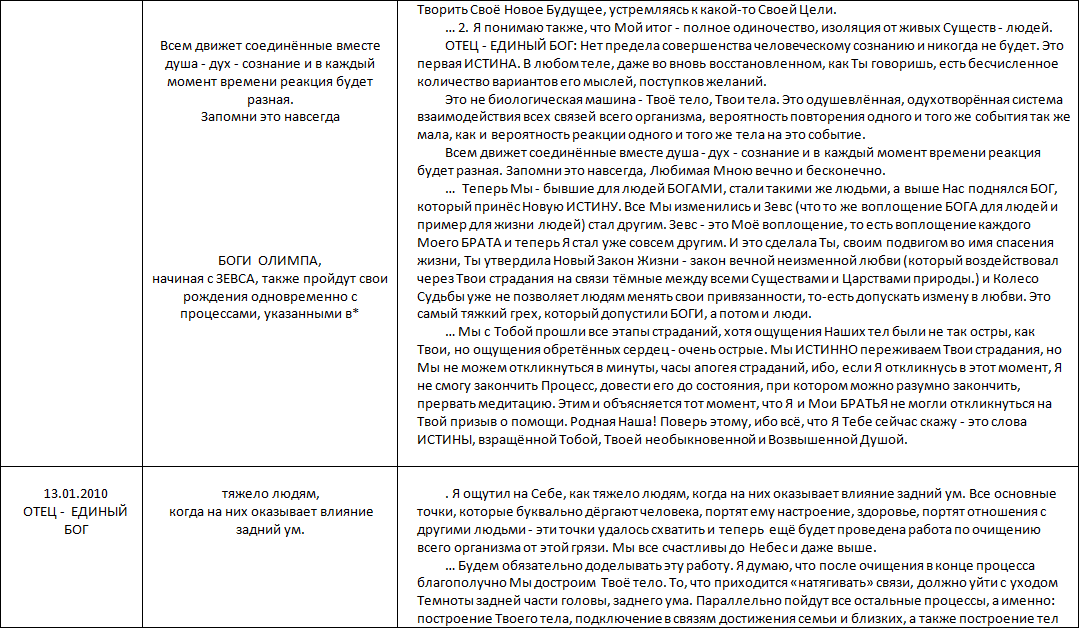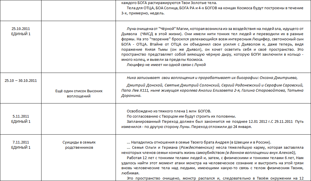 Всё очень даже правильно в КНИГАХ, но в материалах групповых медитаций указано, цель этих медитаций – подготовка человечества в 5-е и 7-е Измерения. Это фактически «иезуитский приём» попытаться на очень высоком духовном уровне ограничить человечество и весь космос в эволюционном развитии вплоть до уничтожения человечества и человека как «биологического вида». Авторы и главные исполнители этой программы – Руководительница ИСХОДА, называвшая себя «Богиней Валентиной – Изидой (воплощённая Валентина Кузнецова)и её главная помощница «Сома). – то, что в «Летописи…» я называю ЧМСД («Чёрные маги – Слуги Дьявола»)