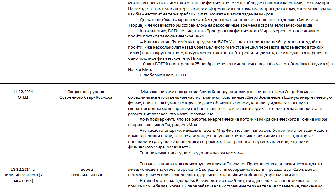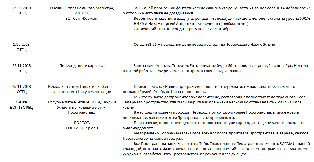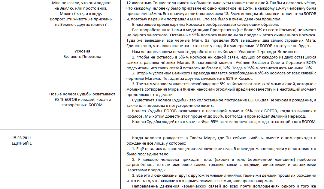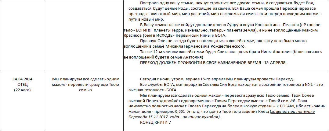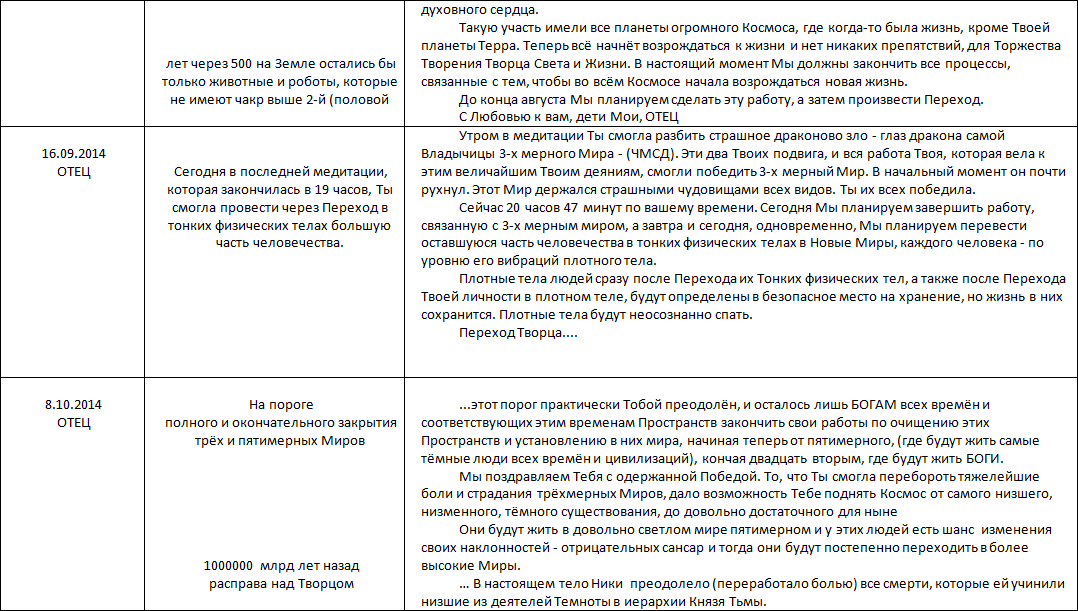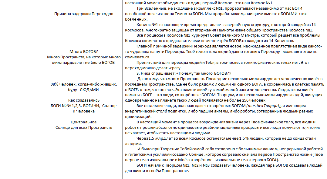 Такой Переход никогда ещё не происходил в Космосе, ибо совпадают завершения циклов, отпущенных Небесными Родителями для развития жизни, как на нашей планете, являющейся сердцем Космоса, так и циклов, соответствующих периодам системного, галактического и вселенского уровня.