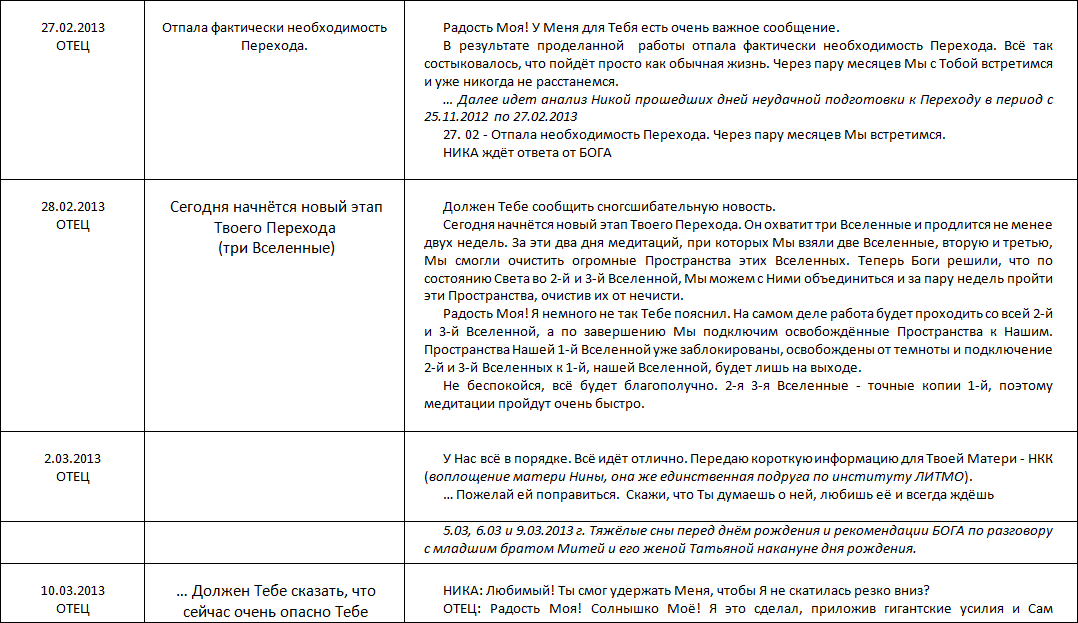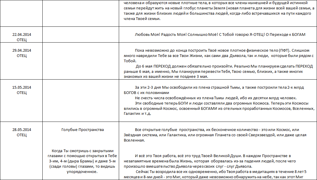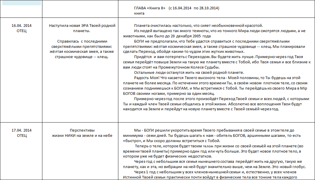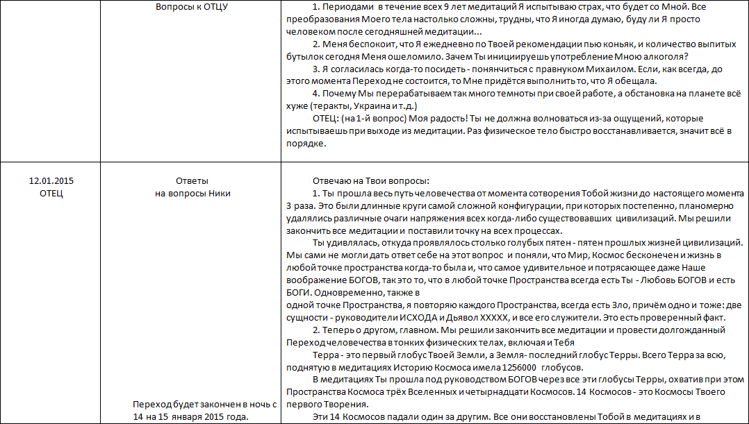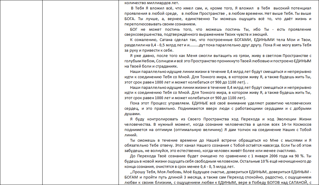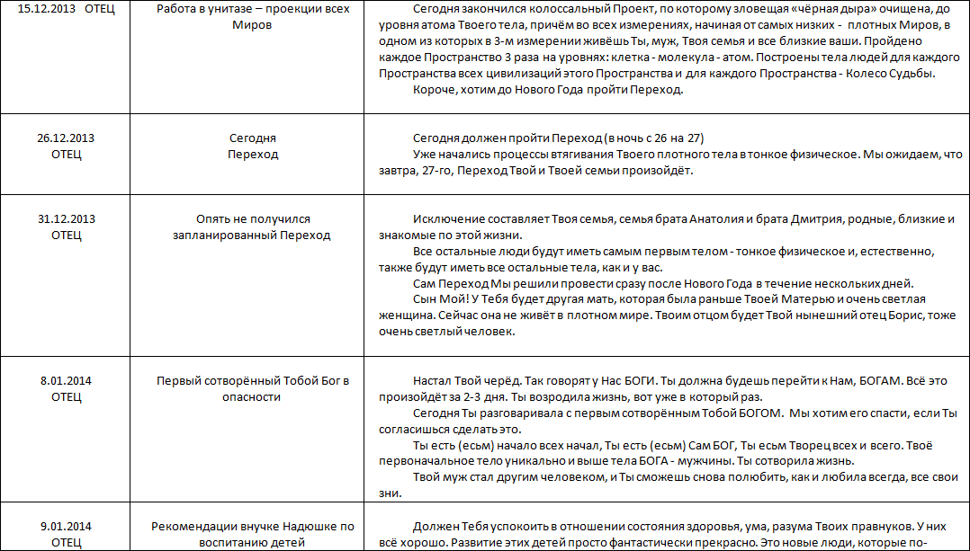 Такой Переход никогда ещё не происходил в Космосе, ибо совпадают завершения циклов, отпущенных Небесными Родителями для развития жизни, как на нашей планете, являющейся сердцем Космоса, так и циклов, соответствующих периодам системного, галактического и вселенского уровня.
