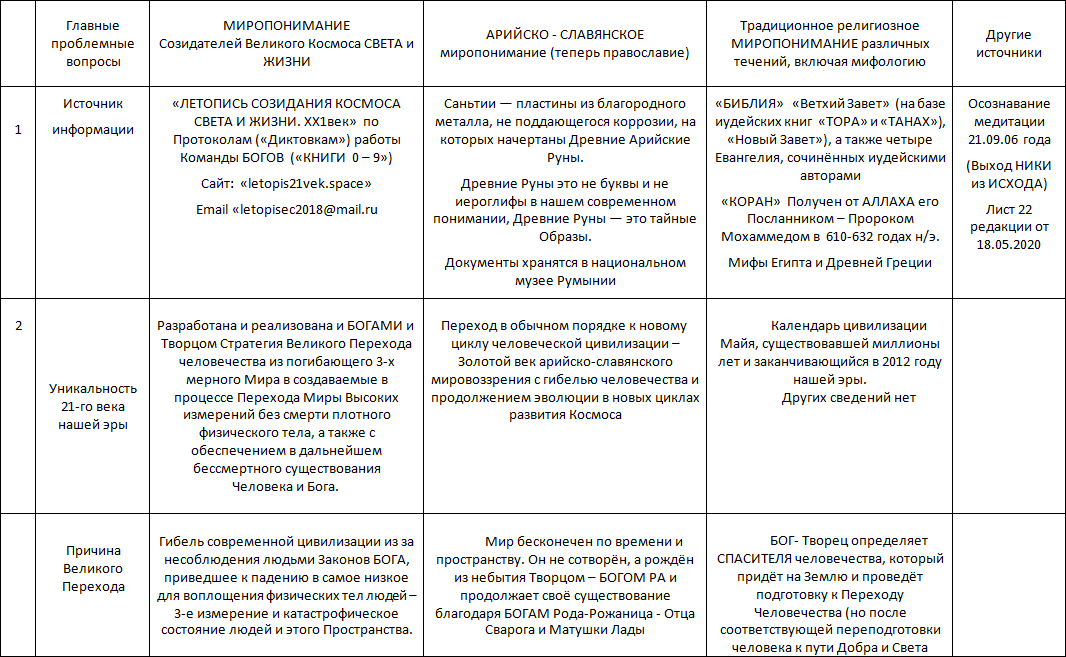 Результаты работ Команды БОГОВ по подготовке Великого Перехода Космоса и Человечества в Высокие Измерения. Сравнительный анализ мировоззрений (база для организации широкого обсуждения в формате БЛОГА)