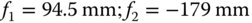 Therefore, the focal length of the first ‘crown lens’ should be 94.5 mm and the focal length of the second diverging lens should be −179 mm.