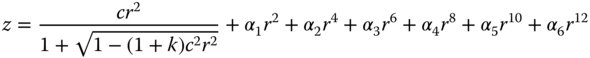 c = 1/R is the surface curvature (R is the radius); k is the conic constant; αn is the even polynomial coefficient.