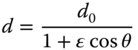 The parameter, ε, is the so-called eccentricity of the ellipse and is related to the conic parameter, k. In addition, the parameter, d0 is related to the base radius, R, as defined in the conic section formula in Eq. (5.1). The connection between the parameters is as set out in Eq. (5.3):