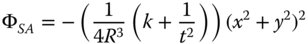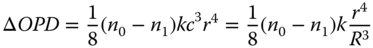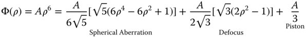 Hence, without defocus, adjustment, the raw spherical aberration produced in a system may be expressed as the sum of three Zernike terms, one spherical aberration, one defocus and one piston term. The total aberration for an uncompensated system is simply given by the RSS of the individual terms. However, for a compensated system only the Zernike n = 4, m = 0 term needs be considered. This then gives the following fundamental relationship: