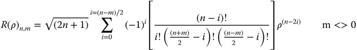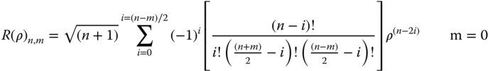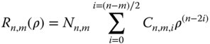 To describe each polynomial, R(ρ), it is customary to define it in terms of the maximum order of the polynomial, n, and the angular parameter, m. For all values of m (and n), the polynomial, R(ρ), may be expressed as per Eq. (5.17).