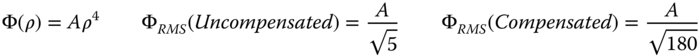 As previously outlined, the uncompensated rms wavefront error may be calculated from the RSS sum of all the four Zernike terms. Naturally, for the compensated system, we need only consider the first term.