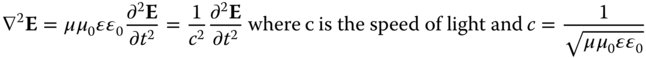 In Eq. 6.3, we have presented that wave equation in its true vector format. That is to say, the equation describes the electric field, E, as a vector quantity. However, much of what we will present in this chapter is a simplification of the wave equation, known as scalar theory. In this case, it is assumed that the electric field may be represented as a pseudo-scalar quantity. That is to say, the electric field, although varying in magnitude, is confined to one specific orientation and may be treated as if it were a scalar quantity. In fact, this approximation is reasonable where light is closely confined to some axis of propagation, i.e. consistent with the paraxial approximation. Thus, we are to understand that there are some limitations to this treatment.