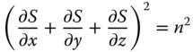 From the above, we can derive the Eikonal equation, but we must assume the E0(x, y, z) and the first differential of S(x, y, z) vary slowly with respect to position. The classical Eikonal equation is set out in Eq. 6.5.