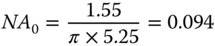 The numerical aperture is thus 0.094 and this corresponds to a divergence angle of 5.39°.