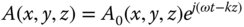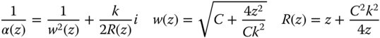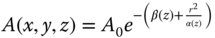 The component A0(z) represents the peak on axis amplitude and this would be expected to diminish as the beam expands. To make the analysis more tractable, we subsume this axial variation into the exponential function as a complex function of z, β(z). Furthermore, both real and imaginary parts of the Gaussian are combined into a single complex function, α(z). Hence, to solve the paraxial Helmholtz equation in this instance we re-cast Eq. (6.32) in the following form: