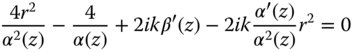 This equation must hold for all values of r. Both the quadratic terms and those with no dependence in r must sum to zero. Taking the quadratic element only, we may derive a very simple relationship for α(z).