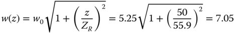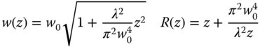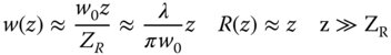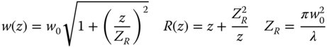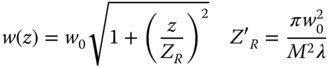 We note that there some characteristic distance, Rz, over which the beam expands around the beam waist. This distance is known as the Rayleigh distance and the Eq. (6.35) may be finally re-cast to give the following: