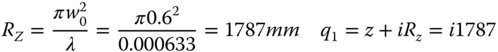 For a Gaussian beam, the wavefront curvature can be represented by the complex quantity, q, where q = z + iZR. The distance from the beam waist is represented by z and ZR is the Rayleigh distance. Expression (6.38) may be re-cast in the following form: