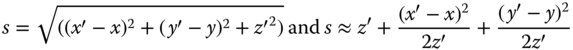 The analysis of Fresnel diffraction is derived from the Rayleigh diffraction formulae (Eqs. [6.8] and [6.9]). The key assumption in the Fresnel analysis relates to an approximation of the propagation distance, s. If one assumes that the near field object is located at z = 0, then the propagation distance may be approximated in the following manner: