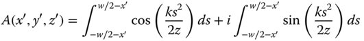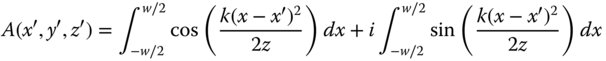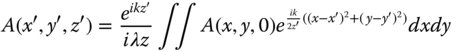 The value of the Fresnel approximation is that it now permits us to treat the axial propagation distance, z, as a constant and to remove it from the integral in the diffraction equation, producing a more simple expression involving integration with respect to x and y. This is the so-called Fresnel integral and it is set out below.
